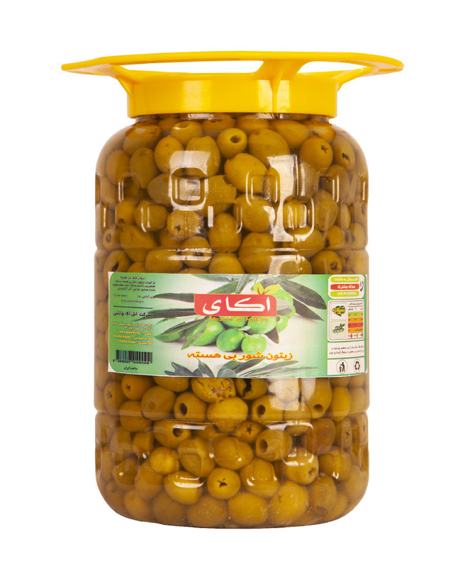 زیتون شور بی هسته، نمک تصفیه شده صنایع غذایی، سرکه تقطیری با اسیدیته ۵%، آب آشامیدنی